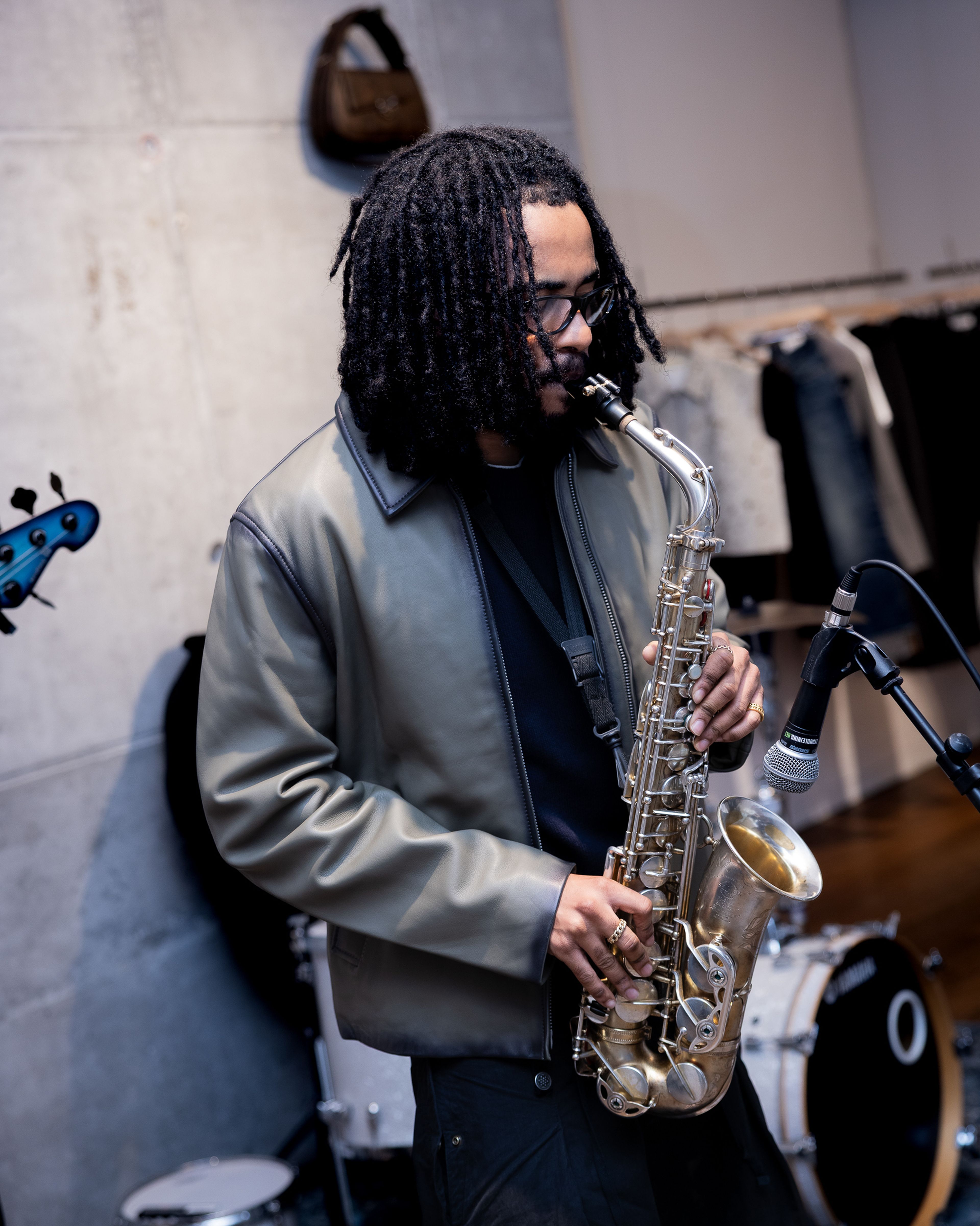 The tour concluded at our Pilestræde store – a former bathhouse in the heart of Copenhagen, as revealed by the tiles covering interior of the store. Here, guests explored The Herø Bag up close and enjoyed an exclusive performance by saxophonist and producer Venna and his band.